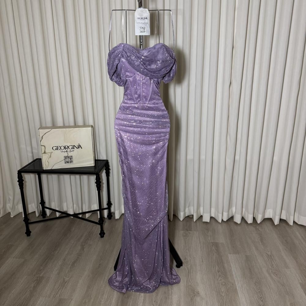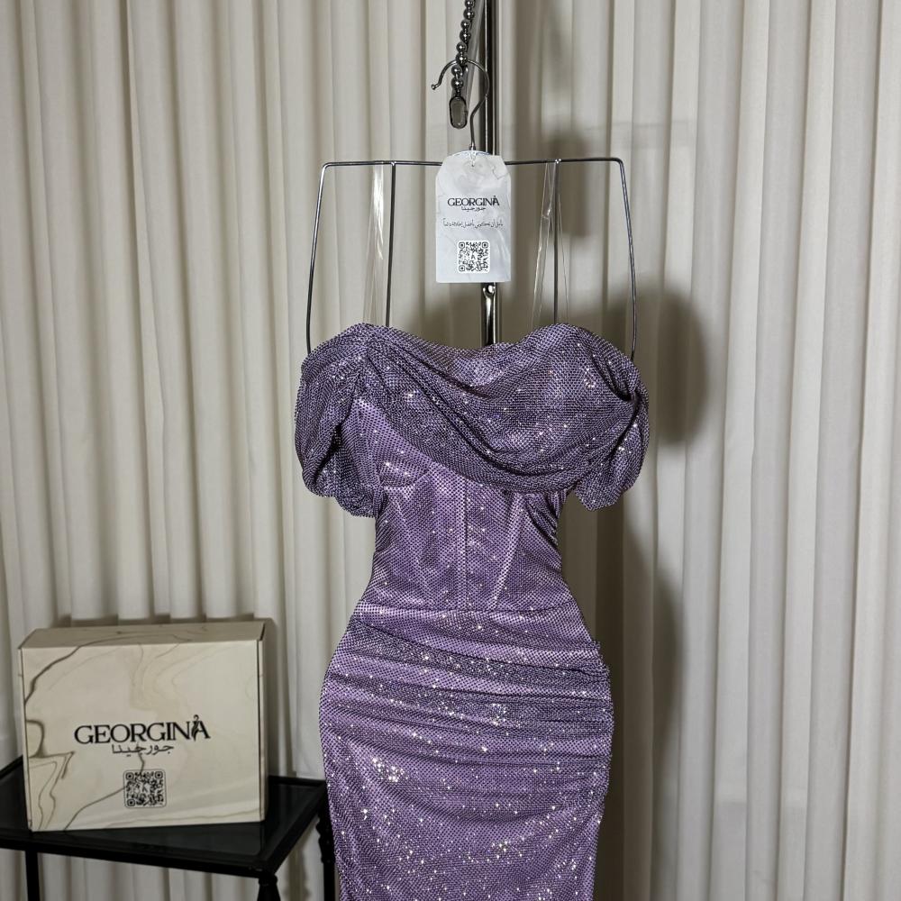 فستان سهرة موف طويل مفتوح من جورجينا فاشن: فستان "الاوركيد" يجمع بين اللون الموڤ الساحر ونسيج السلك المضيء، مع تفاصيل الفصوص الكبس اللامعة والقصة المفتوحة الجريئة، ليمنحكِ إطلالة أنيقة وعصرية.