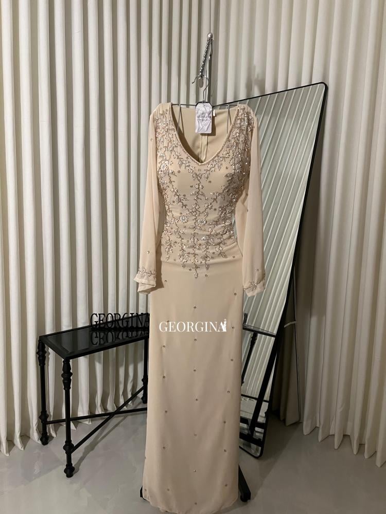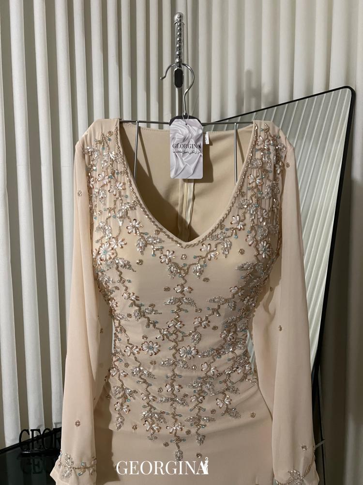 إكتشفي أناقة وفخامة جلابية بيج من جورجينا، تصميم جلابية شيفون فاخر يناسب جميع المناسبات الخاصة، بلمسة مميزة وفريدة.