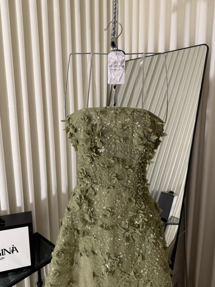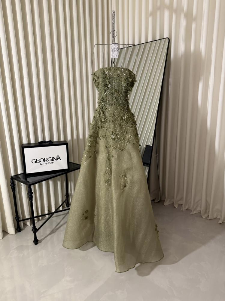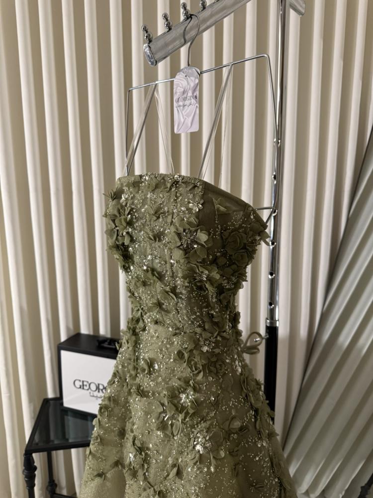فستان سادينا - فستان سهرة زيتي غامق | فستان سهرة طويل بتصميم فاخر من جورجينا فاشن بلون زيتي غامق، تصميم أنيق يناسب جميع المناسبات الخاصة.