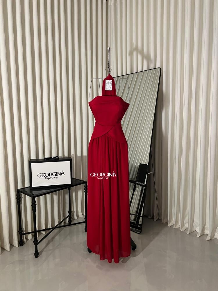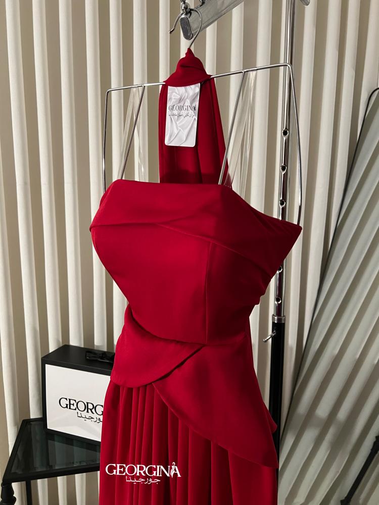 فستان سهرة احمر قماش كرب استرتش | فستان كايلا