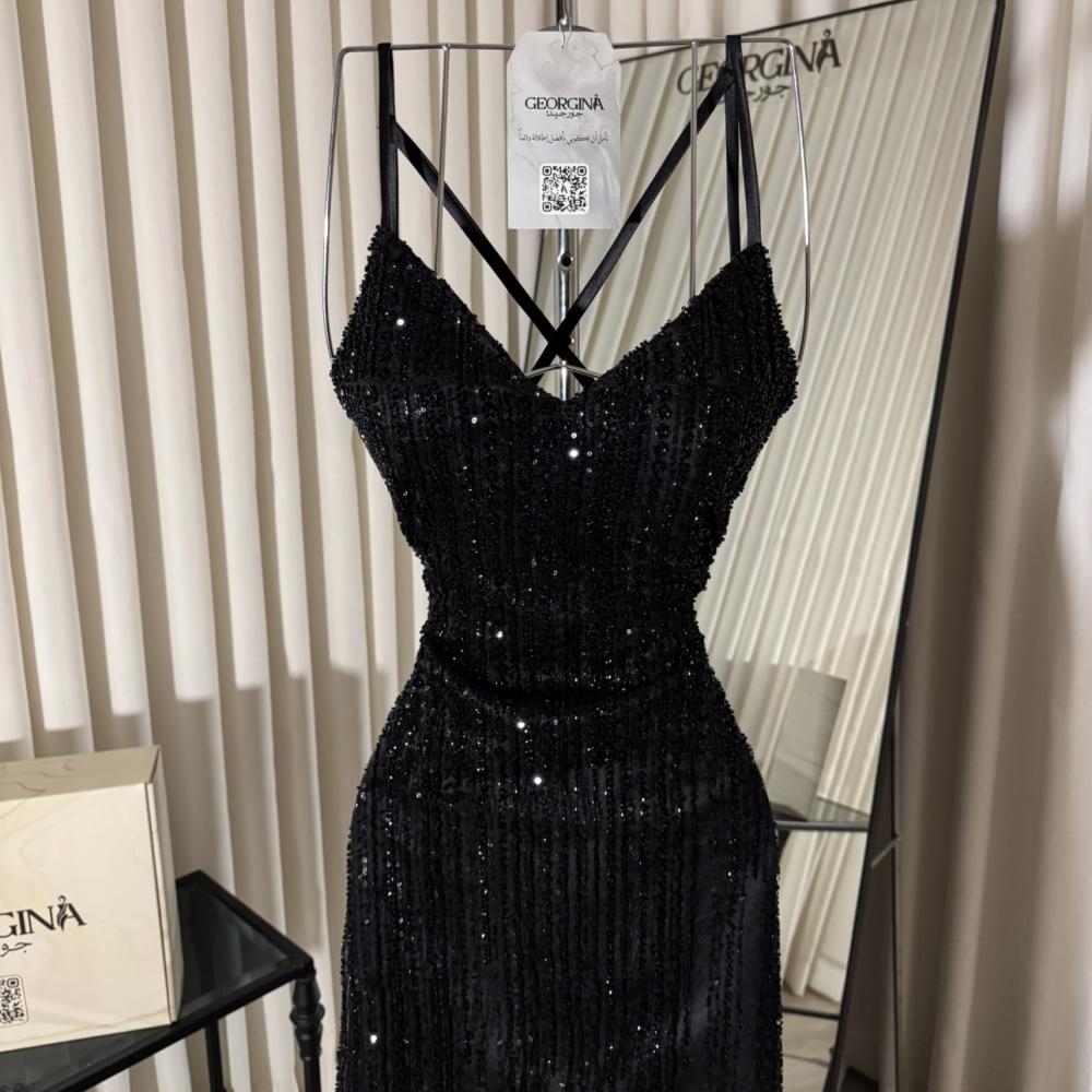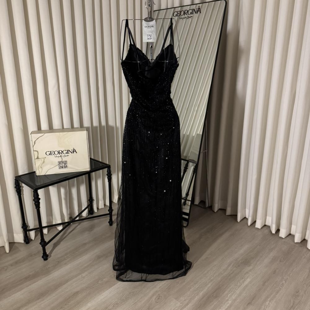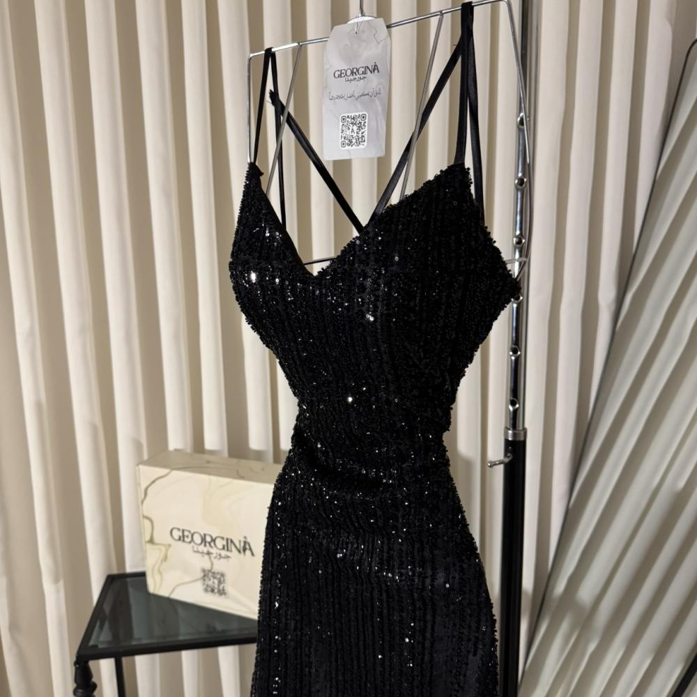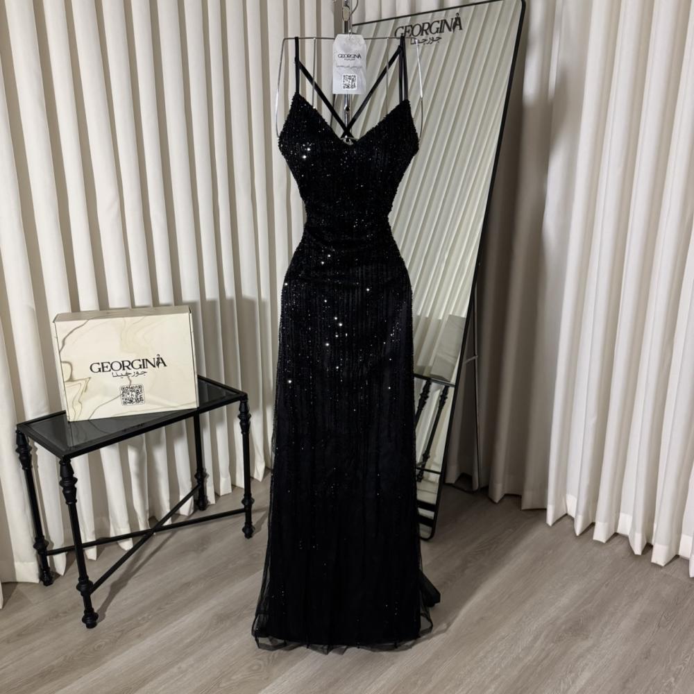 فستان سهرة اسود طويل حمالات من جورجينا فاشن: فستان "سدون" يجسد البساطة الأنيقة بلونه الأسود الكلاسيكي، وتصميمه بحمالات مع قماش سهرة الكمبيوتر المنسدل، ليمنحكِ إطلالة جذابة وراقية.