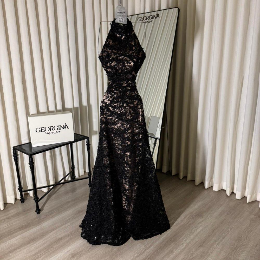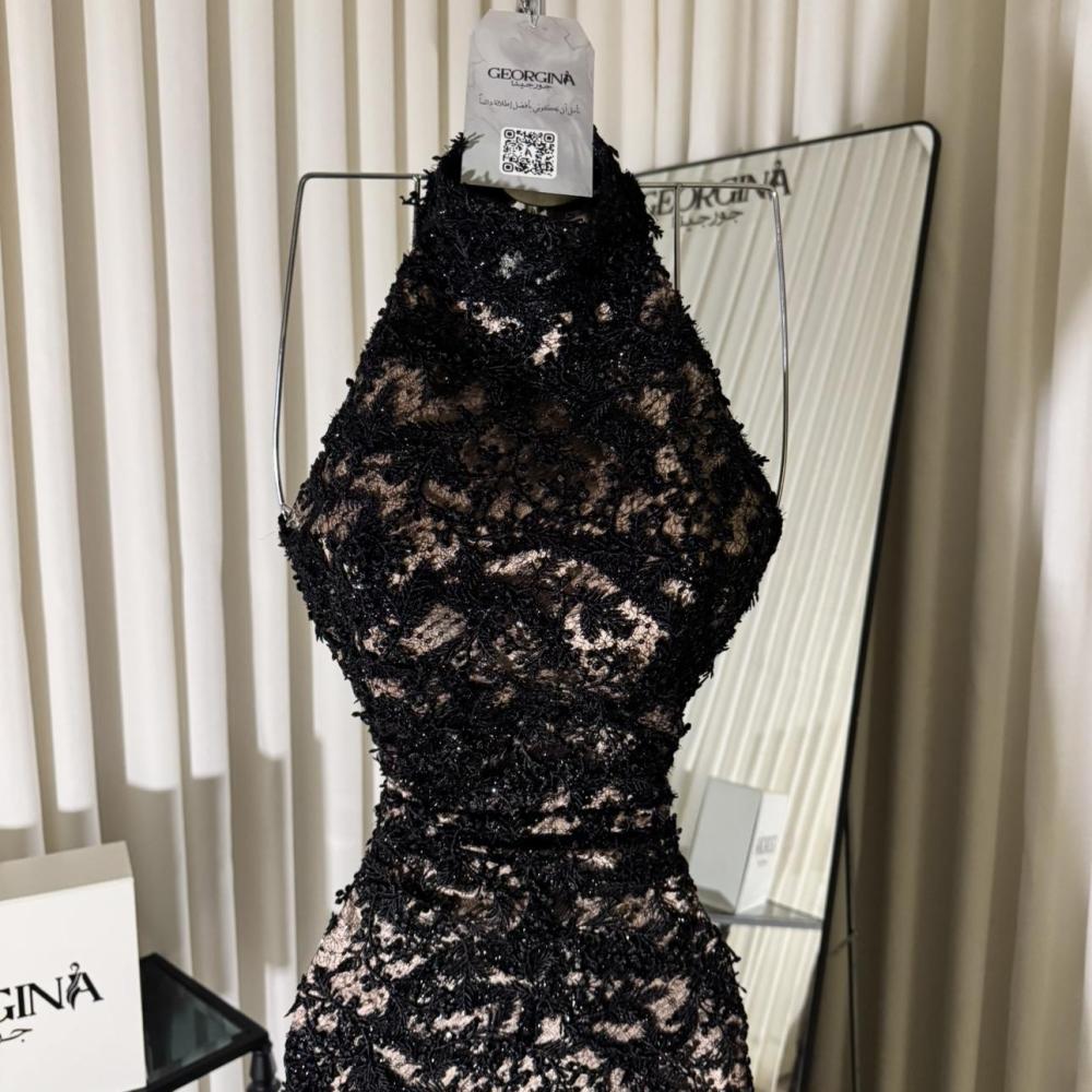 استمتعي بإطلالة فاخرة وأنيقة مع فستان سهرة اسود دانتيل من جورجينا فاشن، الذي يجسد الأنوثة والفخامة ليمنحكِ إطلالة ساحرة في كل مناسبة خاصة.