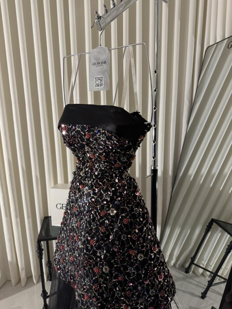 استمتعي بإطلالة ساحرة وأنيقة مع فستان سهرة أسود طويل من الترتر والتول من جورجينا فاشن، الذي يجمع بين التصميم العصري والفخامة ليتناسب مع كافة المناسبات الخاصة.