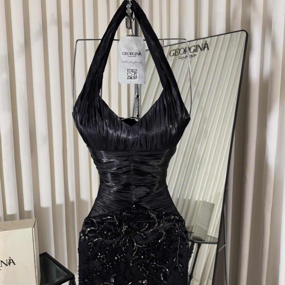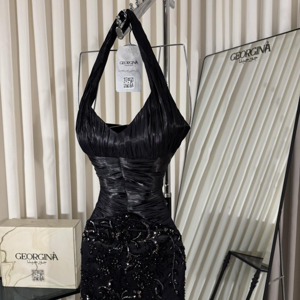 فستان سهرة اسود طويل من جورجينا فاشن: فستان "فهيده" يجمع بين الأناقة المطلقة للون الأسود وقوة قماش كرنكل الكسرات مع بريق كريستال السهرة الساحر، ليمنحكِ إطلالة كلاسيكية مبهرة.