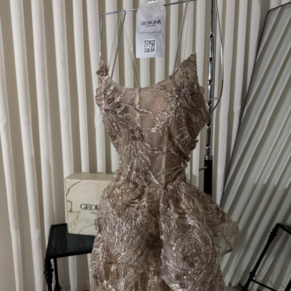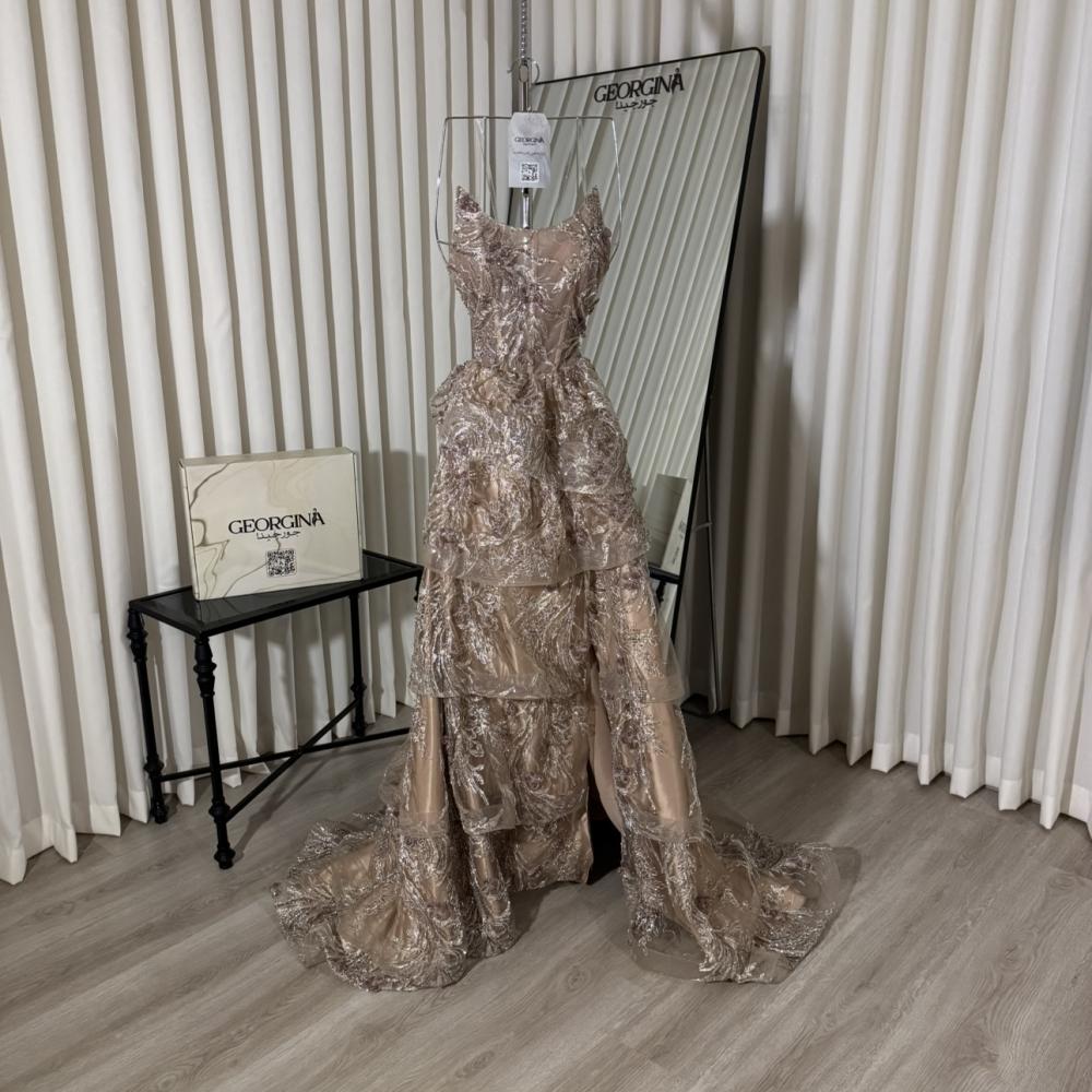 فستان سهرة بيج طويل من جورجينا فاشن: فستان "سويره" يجسد الرقي والنعومة بلونه البيج الهادئ، وتصميمه المبتكر من شرايط الطبقات، ليمنحكِ إطلالة ذات قوام وحركة ساحرة.