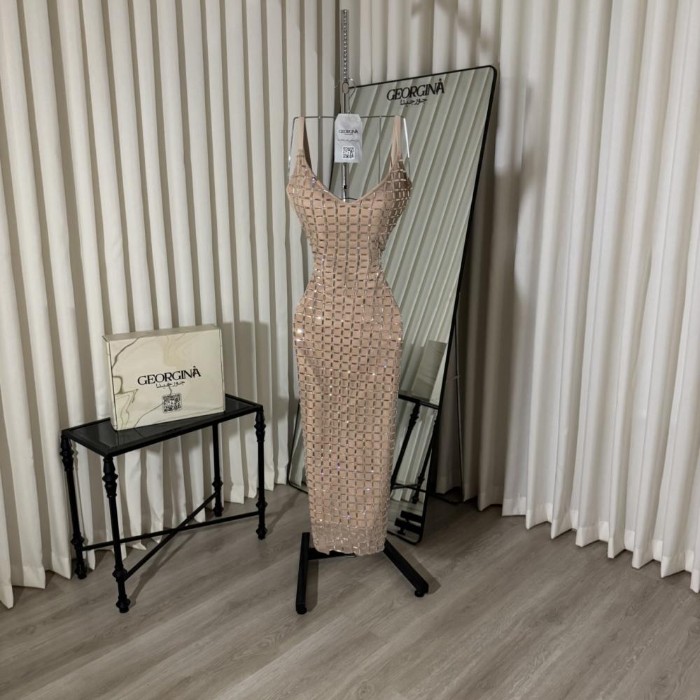 استمتعي بإطلالة ساحرة وأنيقة مع فستان انوسي البيج -ميد- من جورجينا فاشن، الذي يتميز بتصميم عصري يناسب كافة المناسبات الخاصة.