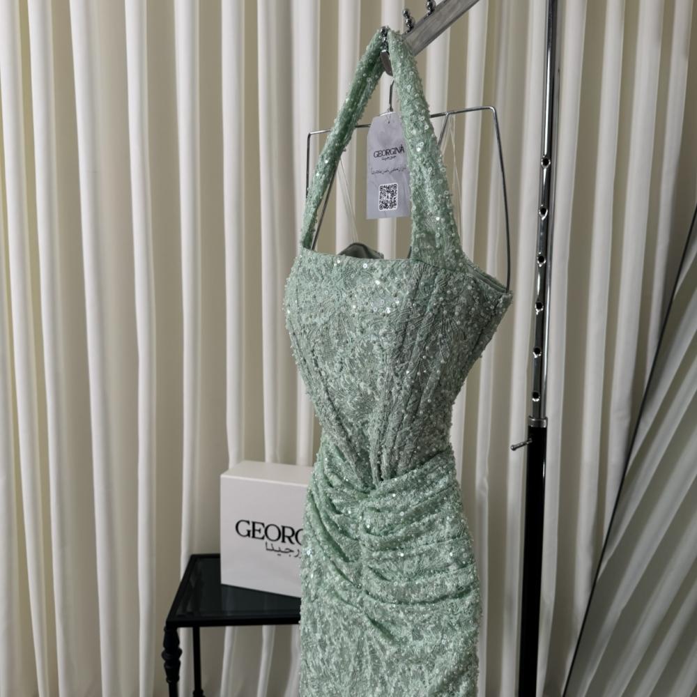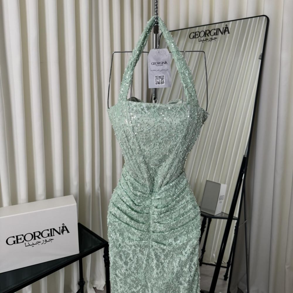 أطلّي بإطلالة ساحرة وأنيقة مع فستان سهرة تفاحي طويل دانتيل لمعة من جورجينا فاشن، حيث يجمع بين الأناقة والفخامة لتمنحيكِ إطلالة استثنائية في كل مناسبة خاصة.