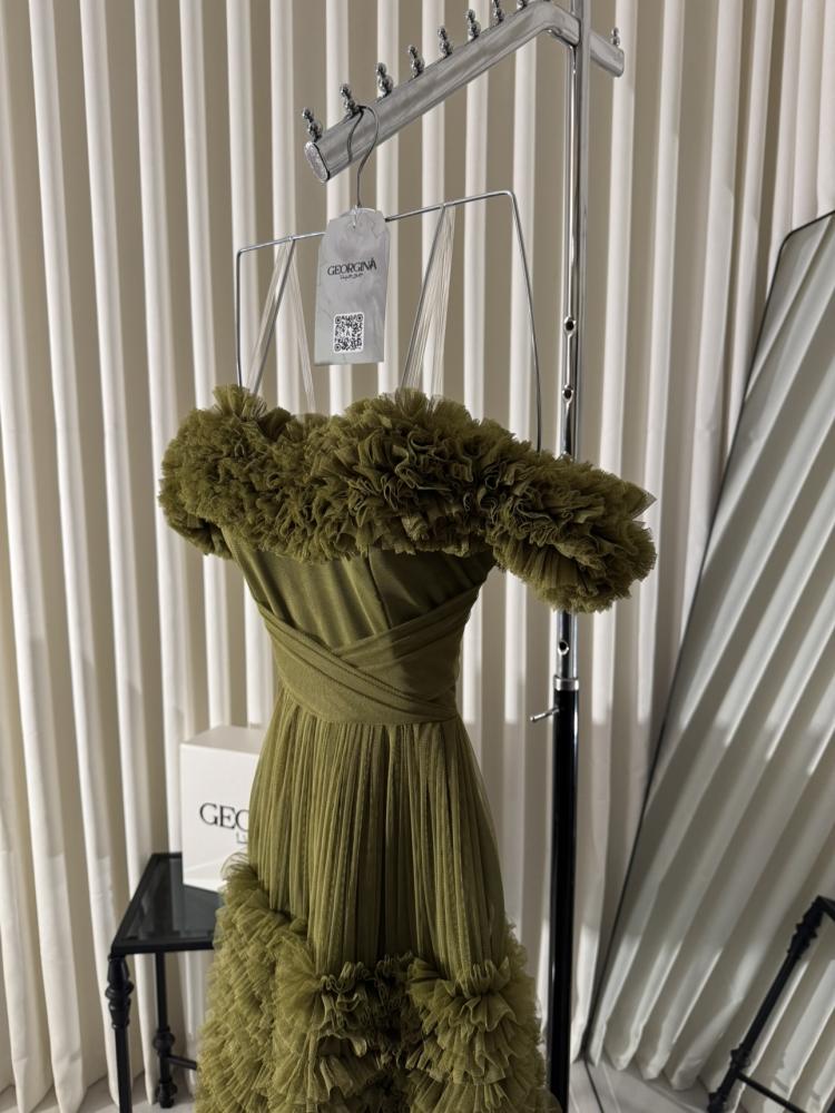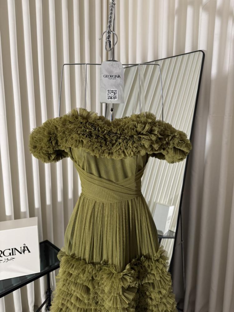 استمتعي بإطلالة ساحرة وأنيقة مع فستان سهرة زيتي تول وشيفون طبقات من جورجينا فاشن، الذي يجمع بين التصميم العصري والفخامة ليتناسب مع كافة المناسبات الخاصة.