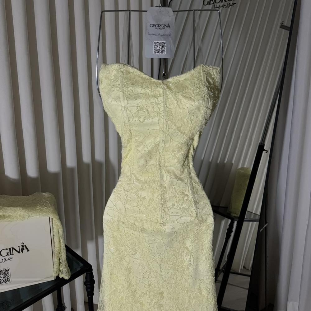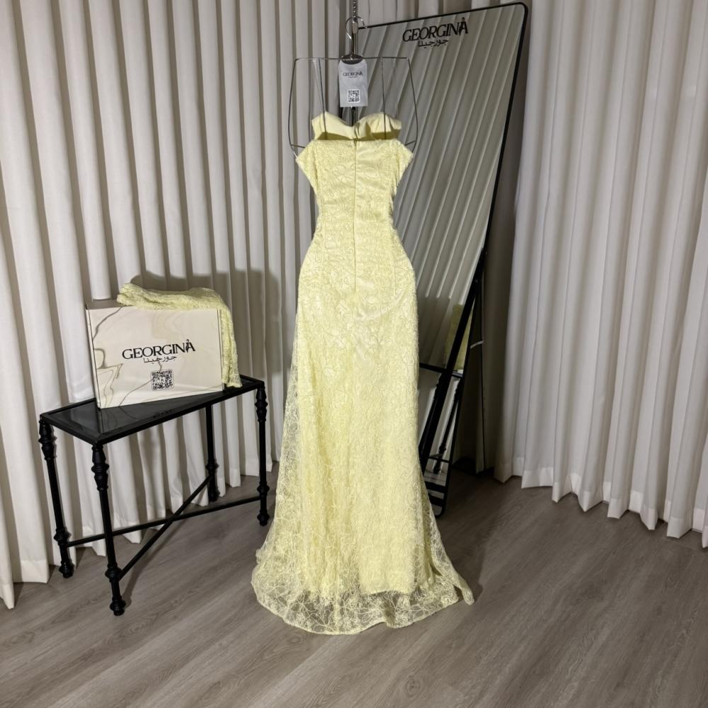 استمتعي بإطلالة فاخرة وأنيقة مع فستان سهرة ليموني دانتيل فصوص من جورجينا فاشن، الذي يجسد الأنوثة والفخامة ليمنحكِ إطلالة ساحرة في كل مناسبة خاصة.