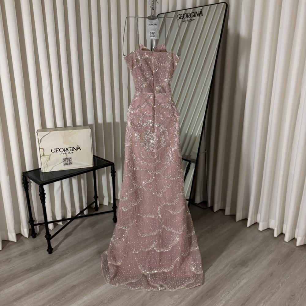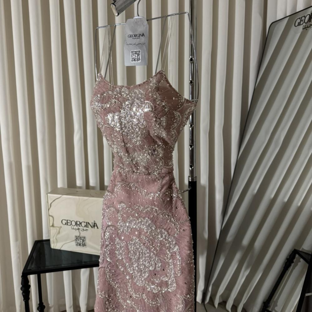 فستان سهرة وردي طويل من جورجينا فاشن: فستان "انايسه" يجسد الأنوثة والرقة بلونه الوردي الناعم، والمزين بـ خرز الكمبيوتر المتلألئ، ليمنحكِ إطلالة مشرقة وحالمة.